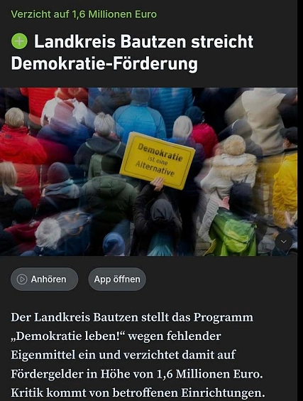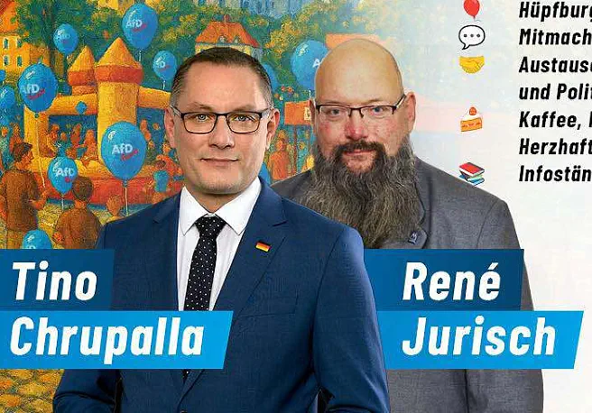 Egal, ob dort Kinder- und Jugendangebotedran hängen. Wer braucht schon Integration,Sprachkurse und Miteinander lieber Tino? Kinderbetreuung mit Basteln, Lesen, Wandernund Kochen, weg! GANZ WEG!Und dann wird richtig aufgeräumt.Windmühlen weg, 58 € Ticket weg, Ausländer raus - auch wenn die hier im Krankenhaus arbeiten. Egal! REMIGRATION! Stell Dir vor Tino. Muslime in Meißen wählen mich und ihr schiebt die ab. Geil.Dass ihr, die AfD, Menschen mit Behinderung wieder ausschließen wollt von der gesellschaftlichen Teilhabe finde ich gammerHEIL. Ähm. Hammergeil. Aber jetzt - 80 Jahre nach Kriegsende - kommt unsere Zeit. Wir mussten so lang warten! Mit unserer Machtergreifung kommt auch der neue Volksempfänger. Weg mit der GEZ.Überhaupt… dieser Staat … eine Diktatur scheint das! Schusswaffen für alle inDeutschland, wie in den USA - natürlich mit der Flagge der Konföderierten Staaten von Amerika. Guck mal, das bin ich.