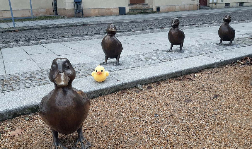 Fuchs: „Ich hab doch gesagt, an der 2. Kreuzung links!“Schnatti: „Ooooch, Fuchs. Die 325 km Umweg sind doch nicht so schlimm. Der Weg ist das Ziel.“
