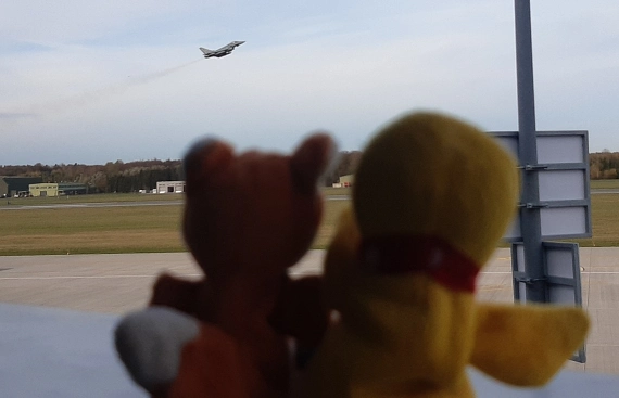 Schnatti: „So ein Eurofighter Typhoon ist ganz schön laut Herr Fuchs!“Fuchs: „Waaaasss haaasssst Duuu geeeesaaaaagt Schnaaatttiii?“