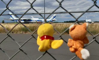 Schau mal, Fuchs. Drei russische Antonov stehen hier rum. Ja Schnatti, sanktioniert durch den russischen Angriffskrieg auf die Ukraine.